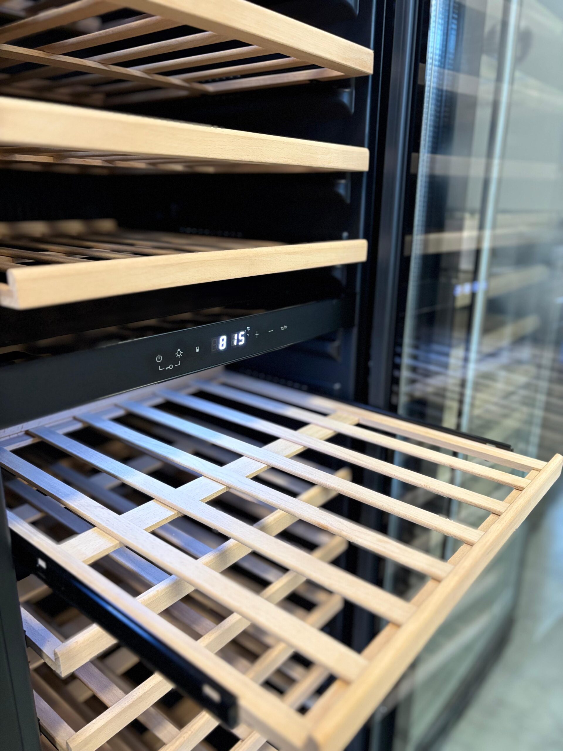 Teleskopske police (na izvlačenje) od kedrovine doprinose estetskom dojmu vitrine i čine da se ona lako uklopi u svaki enterijer, bio on minimalistički uređen, luksuzno i sa puno detalja ili pak tradicionalnije, u etno stilu. Imaju i diskretno LED osvetljenje koje doprinosi upečatljivoj prezentaciji vina gostima od strane konobara ili somalijera.