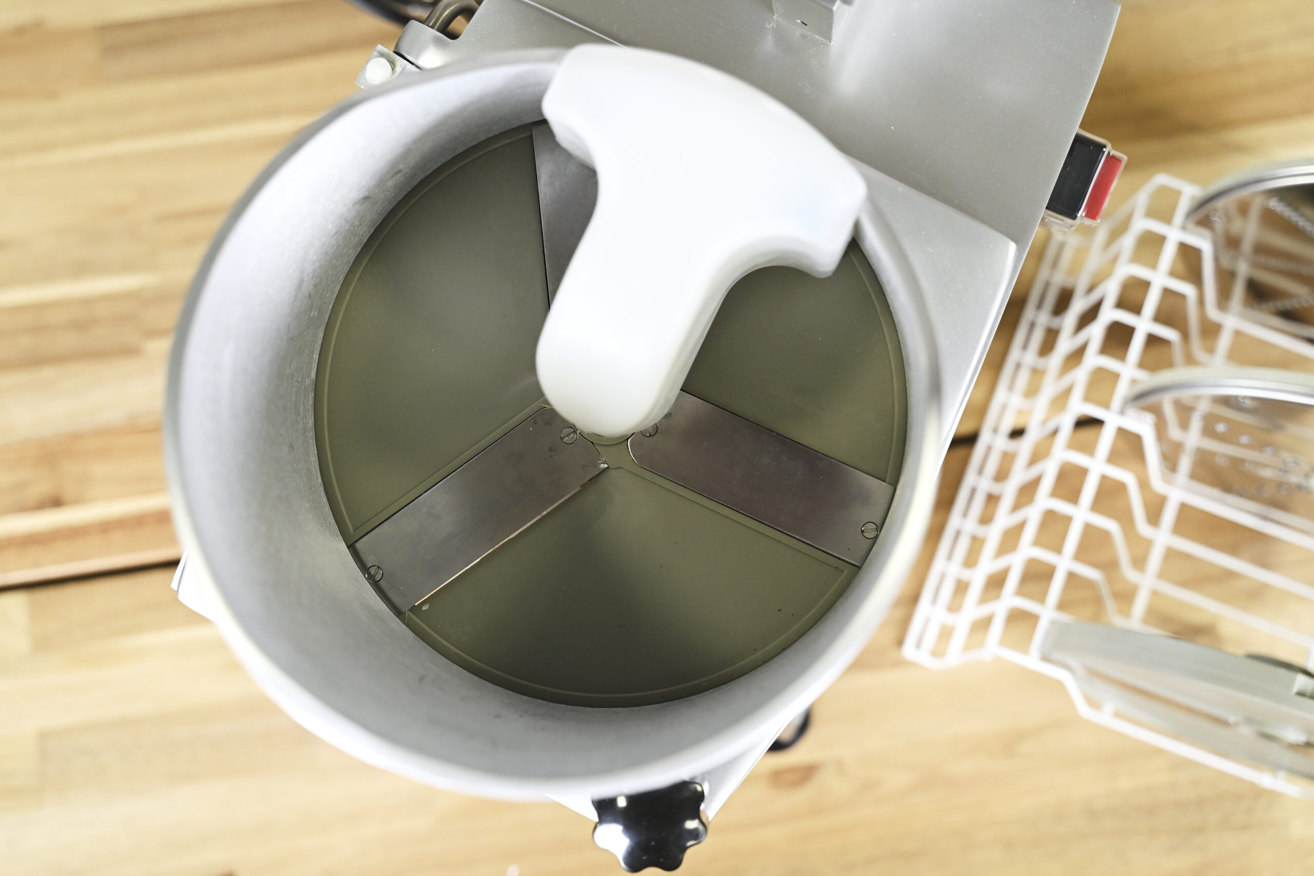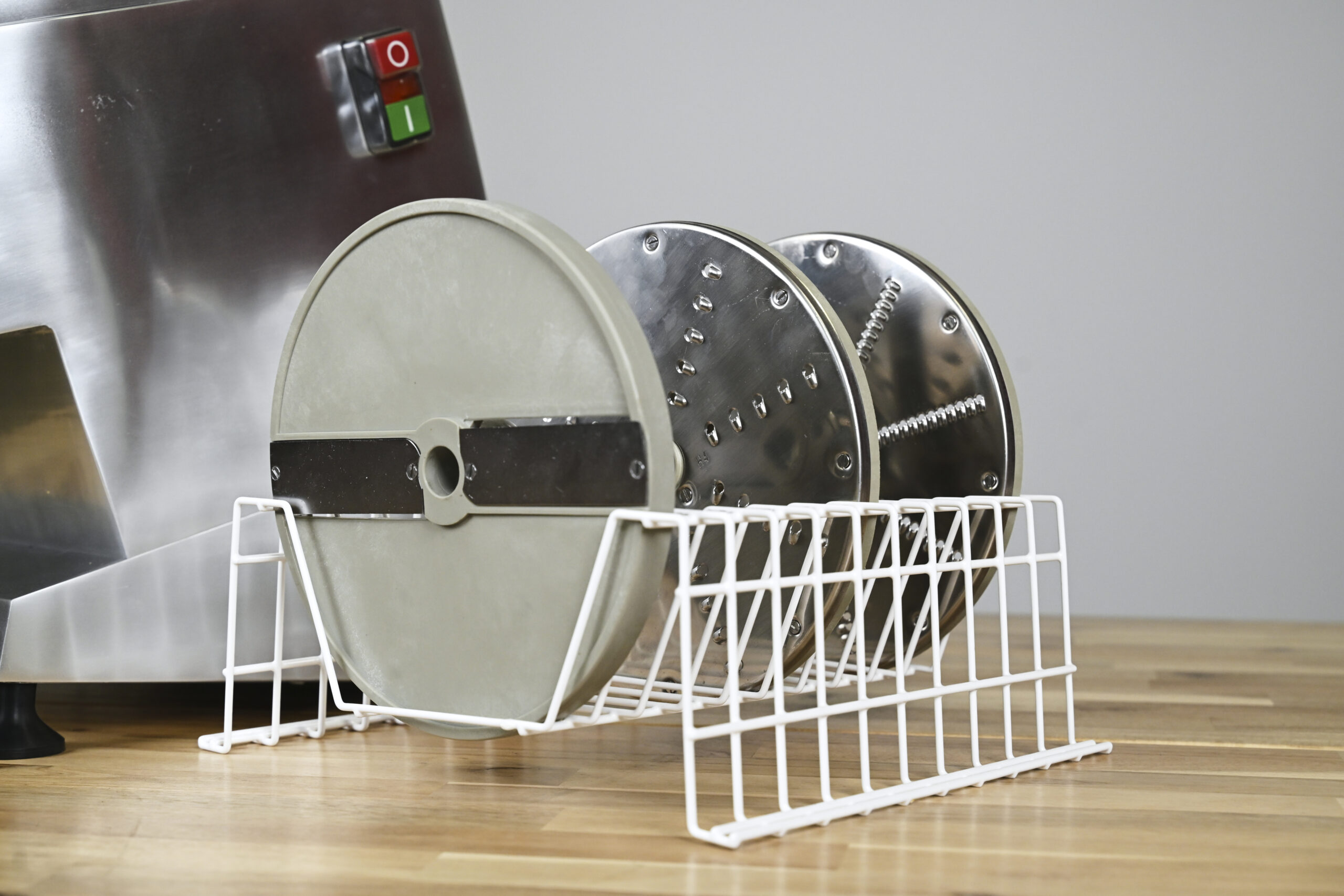 Naša univerzalna seckalica dolazi u paketu sa čak pet disk noževa različitih funkcija koji je čine izuzetno fleksibilnom i pogodnom za sečenje različitih debljina i vrsta namirnica. Uz nju, nije vam potrebna ni jedna druga seckalica. Jednostavno podešavanje i praktičan dizajn, kao i nerđajući čelik (inox) od kog je napravljena dodatne su prednosti zbog kojih bi svaki profesionalni ugostitelj trebalo da uloži u ovu seckalicu za povrće i sir.